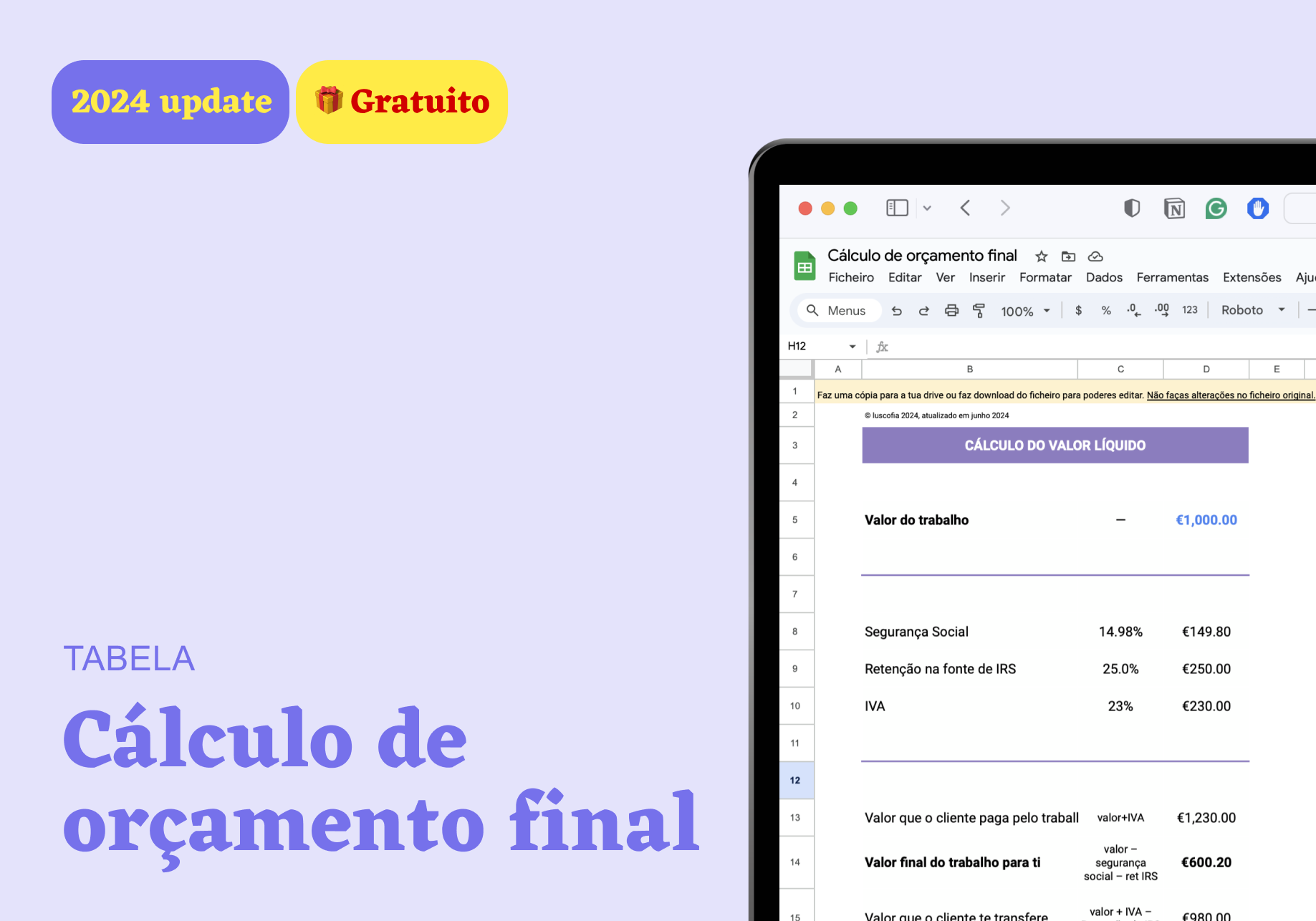 Um template em PDF com várias perguntas, para te ajudar a fazer um ponto de situação do teu trabalho e a manter esse hábito sem dificuldade. Também podes usá-lo como revisão mensal.