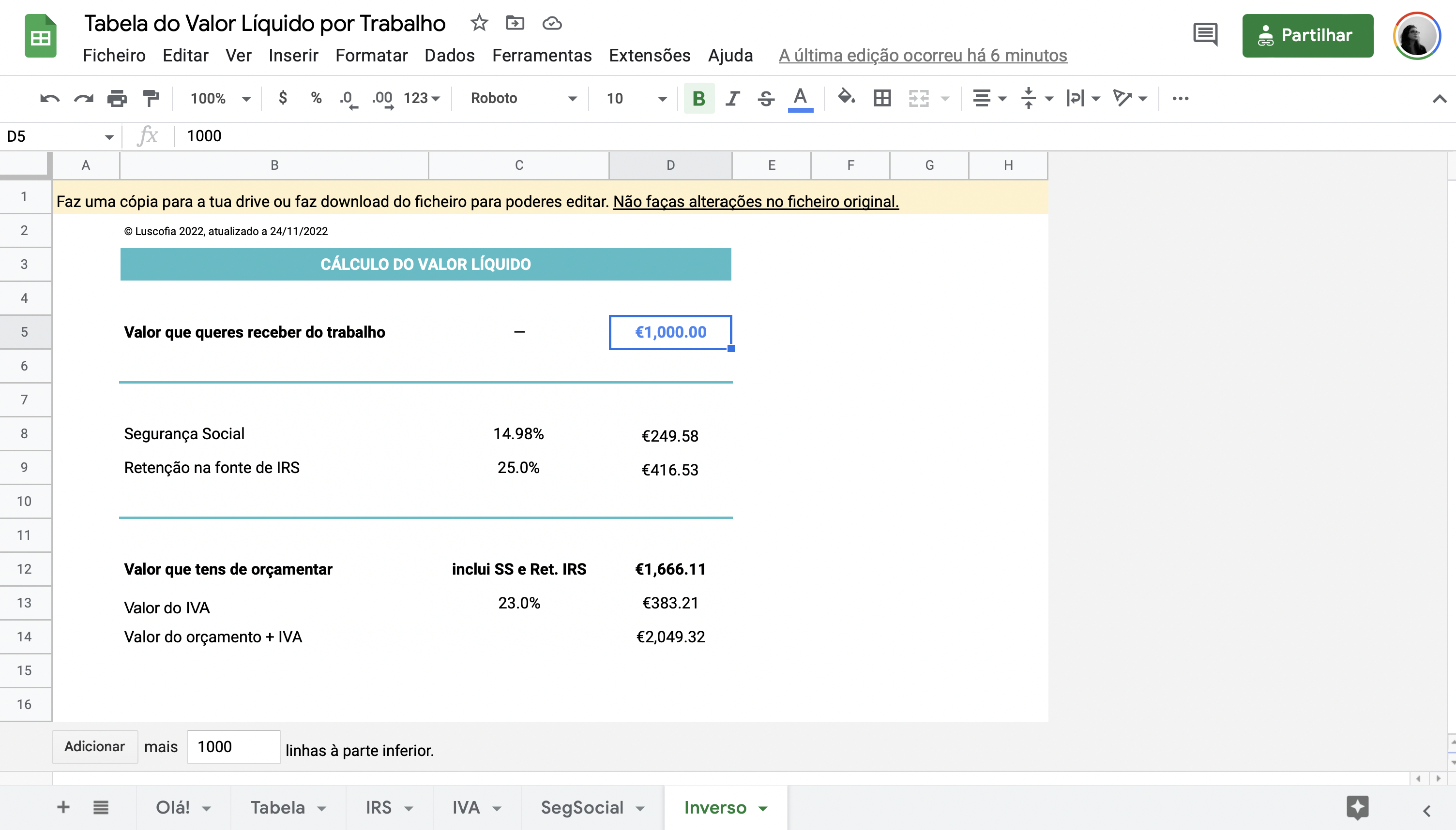 Tabela de cálculo do orçamento finalRoadmap FreelancefólioTemplate de revisão trimestral